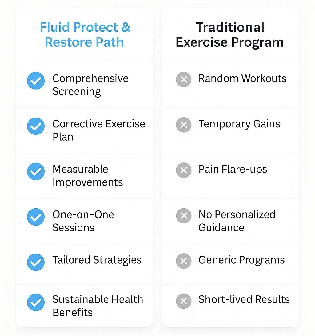 The Protect & Restore Program restores mobility, resolves pain, and rebuilds the mechanics your body lost over the years — and our New Year promotional offer makes this the ideal time to start.